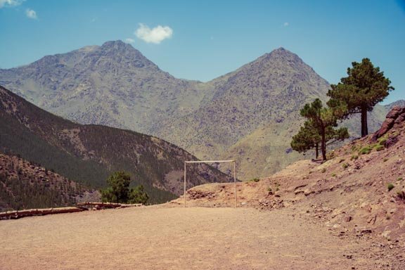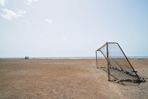Football. Le but, marquer des buts à travers l'espace intérieur d'une structure définie. La Cage de Foot, matérialisé souvent par 2 pieds verticaux et une barre horizontale. Lignes de délimitation crées par nous, présentes autour de nous. Métaphore. Et quand elles ne servent pas au sport, que s'y passe-t-il avec, et dedans? Avec ou sans filet, qu'est-ce Son "dedans"?